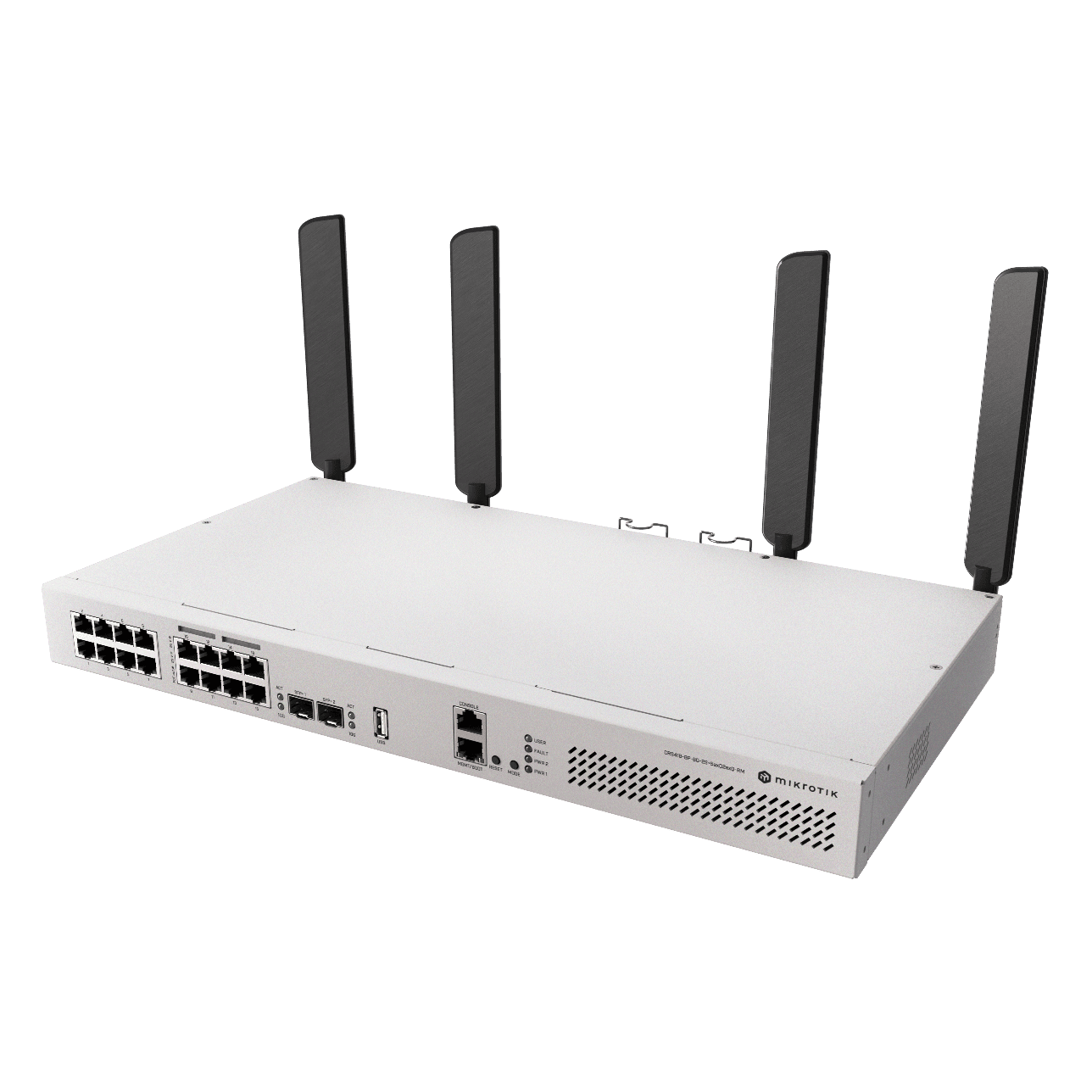Mikrotik CRS418-8P-8G-2S+RM – это высокопроизводительный управляемый коммутатор, объединяющий 16 гигабитных Ethernet-портов, среди которых восемь поддерживают PoE-выход для питания совместимых устройств, например точки доступа или IP-камеры. Дополнительно устройство оснащено двумя слотами SFP+ для 10-гигабитных подключений, портом USB 3.0, гигабитным портом управления и мощным четырехъядерным процессором с частотой 2,2 ГГц. Благодаря этому коммутатору можно легко централизовать управление сетью и сократить количество оборудования в серверной, ведь он объединяет функции нескольких приспособлений.